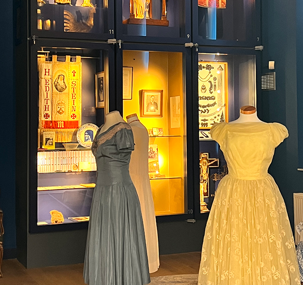 Er is geen beter dorp om aan een route met het thema ‘vrouw’ te beginnen dan Echt. Hier, in het Cultuurhuis Edith Stein, genoemd naar een Joodse filosofe, bezoeken we een unieke expositie in het Museum van de Vrouw. We volgen de tijdlijn van de Nederlandse vrouw. Langs de vele gezichten en de opkomst van de emancipatie, terwijl gids René Vroonen verhalen vertelt die vrouwen door de eeuwen heen kenmerkten. We zien onze overgrootmoeders, gekleed in lange donkere gewaden, vrouwen die als handelingsonbekwaam werden beschouwd. Vrouwen die tijdens de oorlog in de munitiefabriek hadden gewerkt en niet langer alleen achter het aanrecht wilden. De opkomst van de vrouwenbroek, die voor meer bewegingsvrijheid zorgde. Ook het beeld van Maria duikt op in het museum – ze stond met haar vroomheid immers eeuwen voor het ideaal van de vrouw