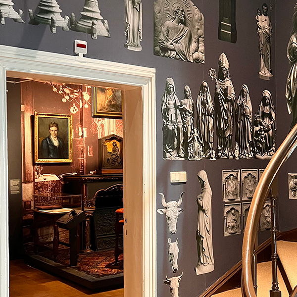 Na een heerlijke lunch bij Brasserie ver’Koch op het Munsterplein bezoeken we het prachtige Cuypershuis, nu een museum. Pierre Cuypers (1827-1921) was een beroemde Roermondse architect, bekend van het Rijksmuseumgebouw en het Centraal Station in Amsterdam. Het museum is gevestigd in zijn oorspronkelijke woonhuis. Een kamer in het huis is gewijd aan zijn gelukkige gezinsleven en zijn huwelijk met Antoinette Albderdingk Thijm, een begaafd zangeres. Op de achtergrond regelde zij alles, zowel zakelijk en privé, voor haar echtgenoot. Als zij er niet was geweest had zijn carrière niet zo’n vlucht genomen”, aldus onze gids Claire Fangman.